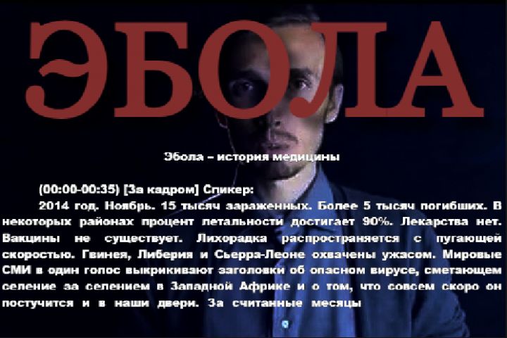 - Каждая реплика снабжена таймкодом и именем спикера, включая выделение (за кадром) .