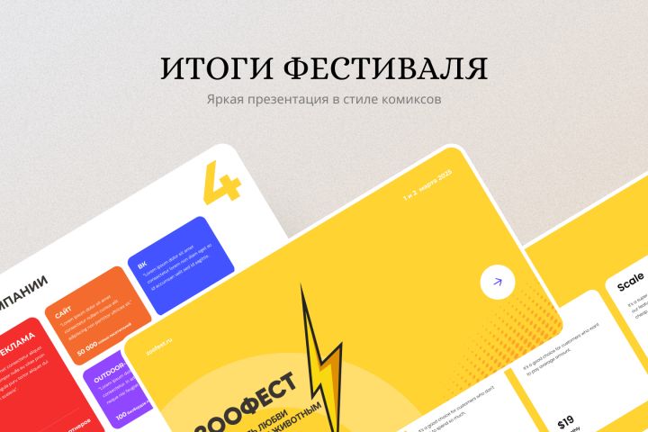 Создание презентации для ежегодного фестиваля ЗООФЕСТ — праздника любви к домашним животным. Презентация подводит итоги PR-кампании и используется как отчет для партнёров и спонсоров.