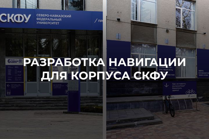 Было решено выбрать определенные группы и места, где необходимы размещения элементов навигации - от плакатов до баннеров и наклеек. Все выполнено в фирменном стиле СКФУ, с добавление доп.цветов.