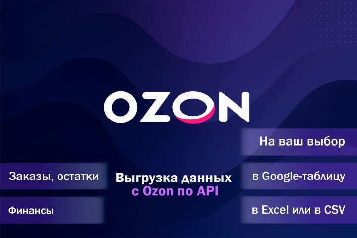 Предлагаю скрипт на Python для автоматической выгрузки данных из личного кабинета Ozon через API. Вы сможете получать актуальную информацию о заказах, остатках, финансовых операциях и товарах. Данные сохраняются в удобном формате (Google-таблицы, Excel или CSV). Инструкция по запуску прилагается.