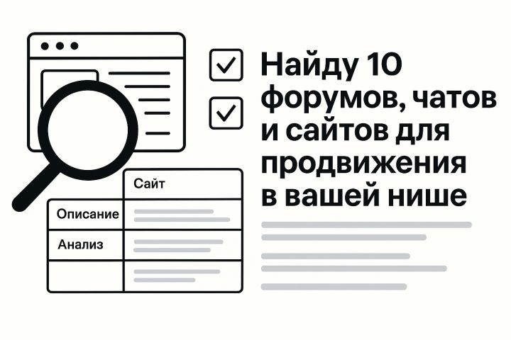 Клиенту требовалась база актуальных площадок (форумы, чаты, сайты), где он сможет продвигать свою услугу — онлайн-курс по графическому дизайну. Цель — найти места с живой аудиторией и возможностью размещения постов, ссылок или участия в обсуждениях.
