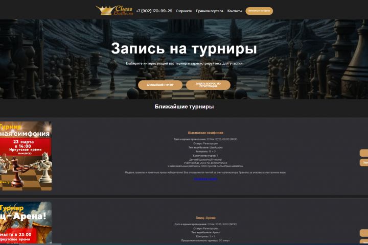 Создания сайта для автоматизации процесса проведения турниров на шахматной платформе lichess. Разработка базы участников, интеграция с liches(создание турниров, контроль участников, получение результатов). Стек react+php+mysql.