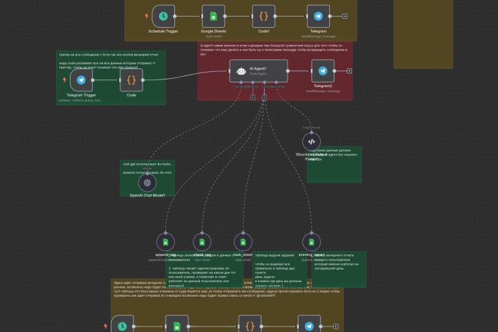 Проект направлен на автоматизацию ежедневной работы с пользователями Telegram-бота: отправку утренних задач, вечерних отчетов и обработку ответов через AI для структурирования данных. Управление задачами осуществляется через таблицу Google Sheets, а взаимодействие с пользователем идет через Telegram.