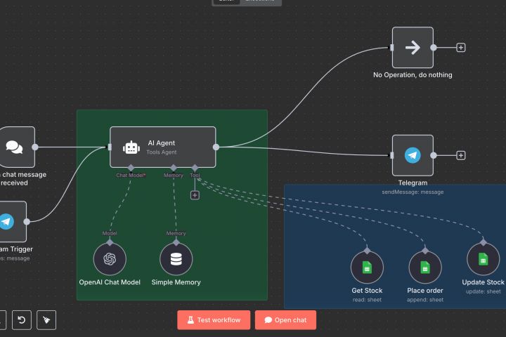 -В зависимости от команды пользователя, AI Agent выбирает действия: проверить наличие товара, оформить заказ или ничего не делать.