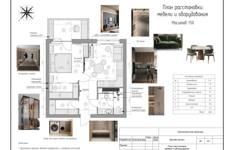 Пожелания заказчика были учтены при перепланировке квартиры, опираясь на правила эргономики и детали. Дополнительно к плану были прикреплены референсы из интернета, для большего понимания интерьера.