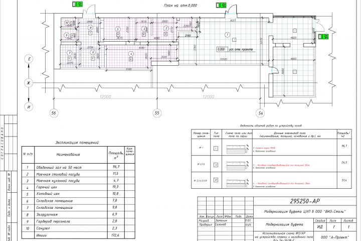 Задача оформить Исполнительную документацию по разделу Архитектурное решение по модернизации буфета в ЦХП ВИЗ-Сталь