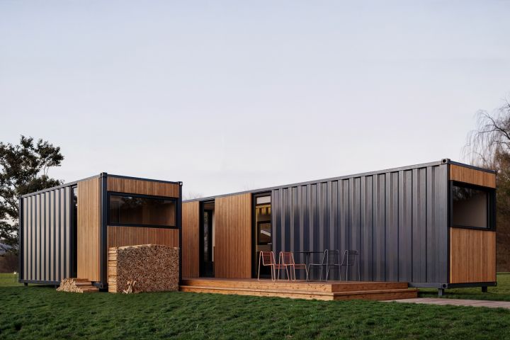 Архитектура и экстерьерный дизайн дома с баней из морских контейнеров
