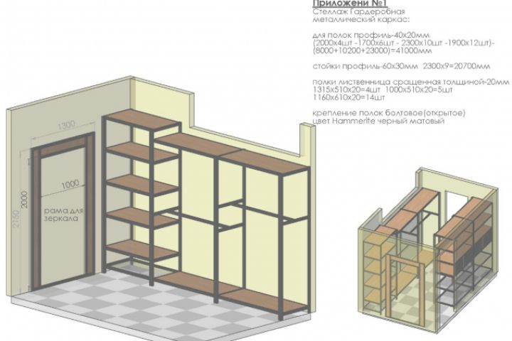 гардеробная лофт металлокаркас