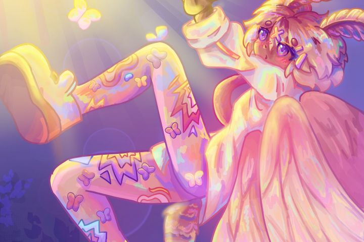 Клиент поставил задачу нарисовать хуманизированного мотылька, в розово- бежевых цветах