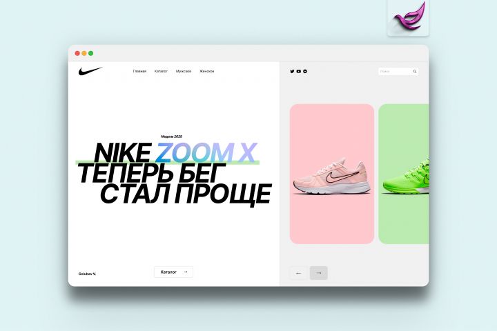 Получился яркий, современный и визуально привлекательный концепт, акцентирующий внимание на преимуществах кроссовок Nike . Дизайн может быть использован как основа для реального интернет-магазина. Он демонстрирует мои навыки в UI/UX-дизайне, типографике и работе с бренд-стилем.
