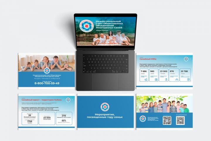 Клиент поставил задачу подготовить современную и структурированную презентацию годового отчёта Межрегионального Союза Общественных Объединений Многодетных Семей за 2024 год. Основная цель – повысить информационную открытость организации, наглядно и доступно показать результаты работы, масштабы проектов, вовлечённость команды и волонтёров, а также прозрачность финансовых потоков. Отчёт предназначен для широкой аудитории: партнёров, грантодателей, волонтёров, стейкхолдеров и семей-бенефициаров. Ключевая задача – сделать отчёт не только формальным документом, но и эффективным инструментом коммуникации, который поможет организации повысить доверие, расширить поддержку и увеличить шансы на получение новых грантов.