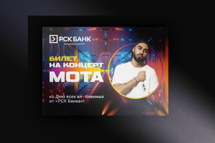 Дизайн подарочного билета на концерт MOT ко Дню всех влюбленных от ОАО «РСК Банк»