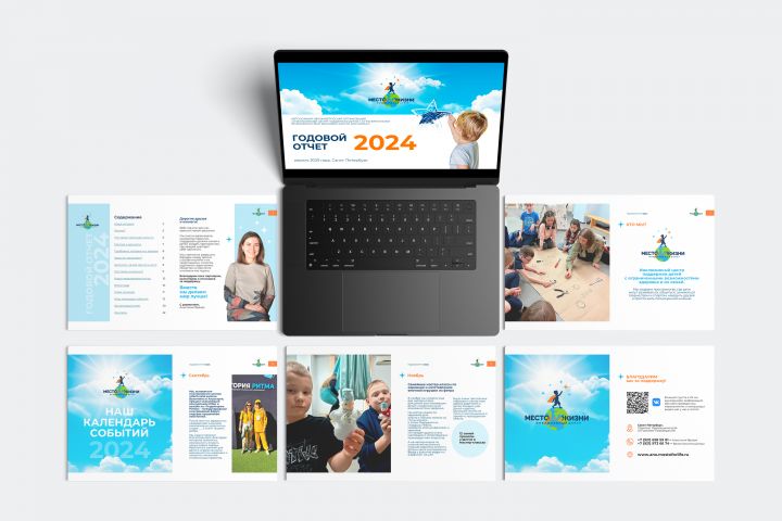 Клиент – автономная некоммерческая организация «Инклюзивный центр поддержки детей с ограниченными возможностями здоровья “Место для жизни”» – поставил задачу сверстать публичный годовой отчет за 2024 год. Основная целевая аудитория отчета: партнеры, благотворители, волонтеры, а также семьи с детьми с ограниченными возможностями здоровья. Ключевая цель – создать современный, информативный и визуально привлекательный PDF-отчет объемом 30–40 страниц, который не только отразит миссию, ценности, ключевые проекты и достижения организации, но и станет инструментом для привлечения новых благотворителей и расширения спектра оказываемых услуг. Важный акцент – использование фирменного стиля, качественной инфографики и фотографий, чтобы отчет был понятен, убедителен и вызывал доверие.