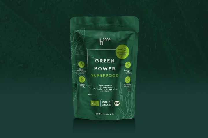 Создать стильный дизайн упаковки продукции, связанной с питанием и суперфудами.