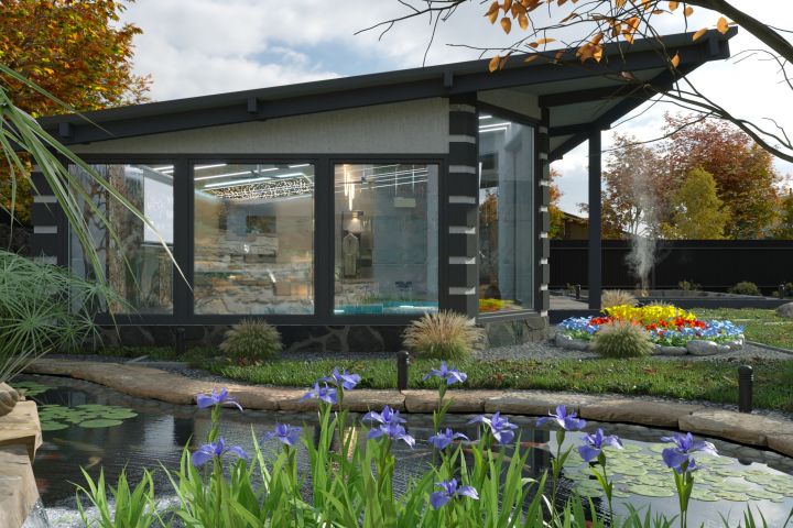 Была поставлена задача разработать пристройку к дому и отдельно стоящее здание банного комплекса.