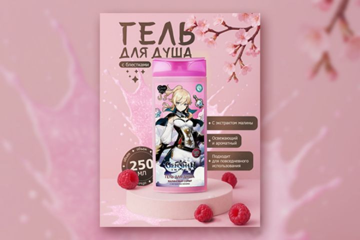 Цветовая палитра🧪 сочетается с ароматом продукта — малиновый сорбет, добавлены сочные ягоды и розовые всплески, усиливающие эффект вкусового😍 восприятия.