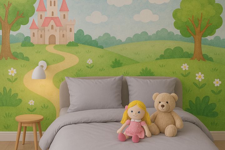 Задача: замена интерьерного фона комнаты подростка, детской. Использовать товар заказчика - постельное бельё для продажи на маркетплейсах.