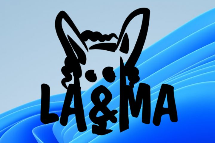 Соединение первых 2 букв 2 фамилий с нарисованной мультяшной ламой