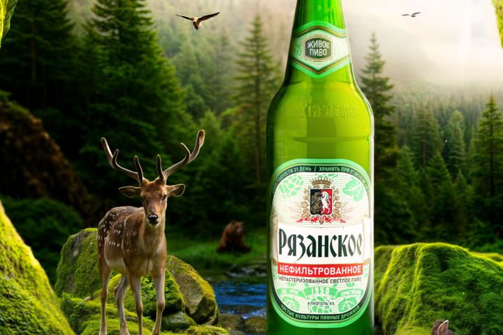 Рекламная карточка товара-пива. На фоне должен быть лес и животные