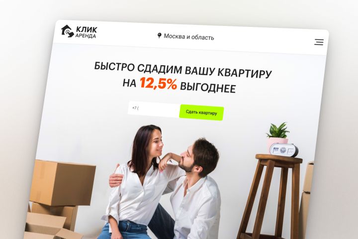 Нужно было создать дизайн сайта-визитки для агенства недвижимости Клик Аренда, специализирующегося на сдаче объектов недвижимости в аренду.