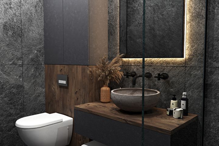 Задача была сделать функциональный дизайн в совмещенной ванной, и все это сделать на пару квадратах.