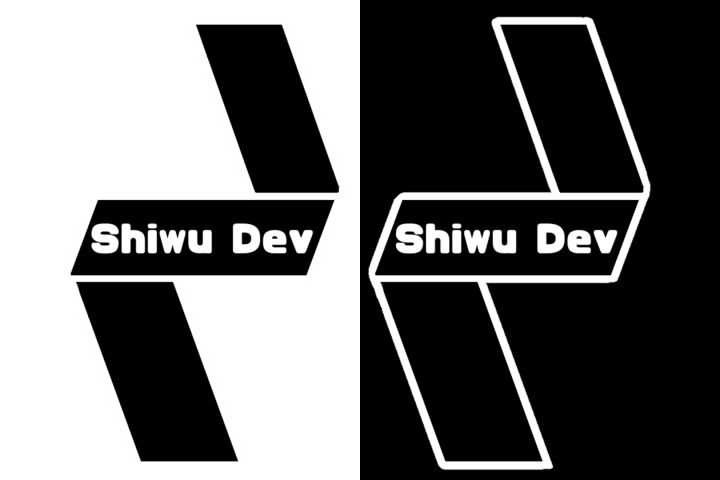 Темный логотип с белой обводкой и белым текстом название студии.