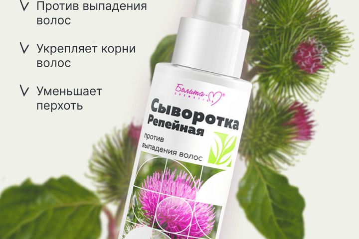 Создать привлекательный слайд для товара "Сыворотка репейная", который будет выделяться среди конкурентов в поисковой выдаче.