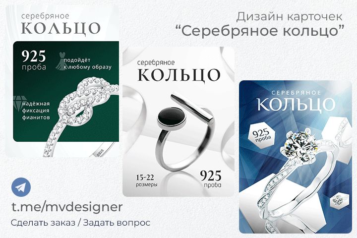 Необходимо было разработать дизайн карточки для кольца в стиле минимализм. Указать утп: размер и пробу.