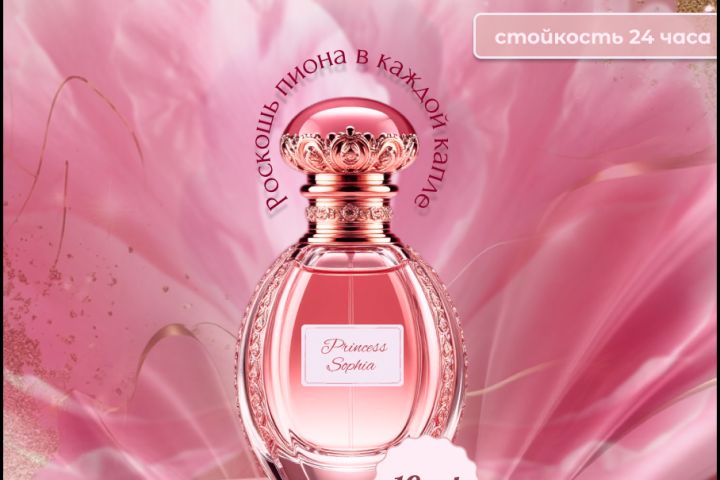 Для создания карточки товара был создан фон, основные элементы (лепестки пиона, цветы жасмина) с помощью нейросети. Так как флакон был розовый и аромат цветочный, то было принято решение создать фон в той же стилистике с добавление золотой пыли, чтобы подчеркнуть премиальный статус духов.