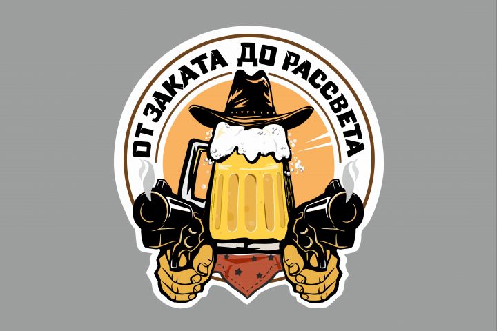 Разработать логотип бара по ТЗ, обязательно: пивная кружка с пеной, револьверы, ковбойская шляпа...