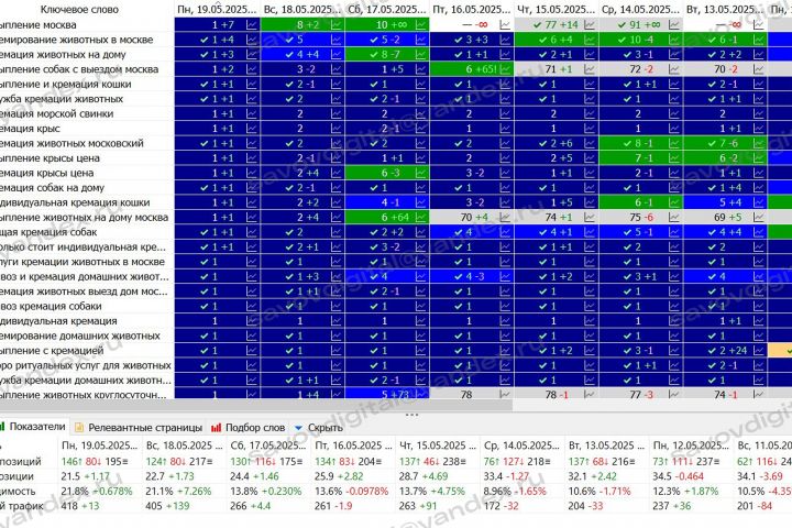 Продвинуться в ТОП-10 по ключевым коммерческим запросам (например: усыпление животных, кремация животных, кремация на дому и т.д.).