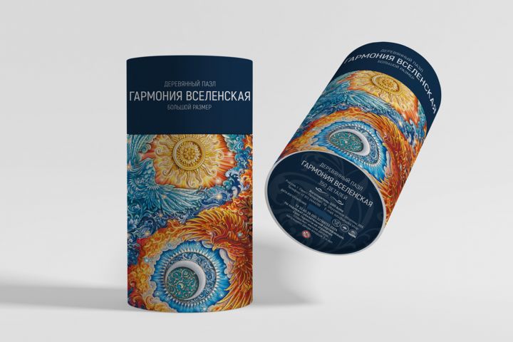 Дизайн упаковки тубуса для деревянных пазлов бренда Сказка