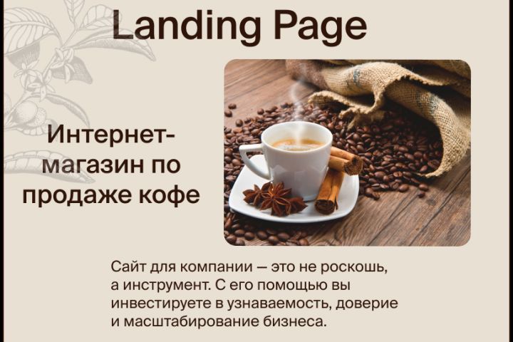 Молодая компания, недавно открытая на рынке по продаже спешелти сортов кофе, хочет увеличить приток покупателей и узнаваемость на рынке. Задача - разработать дизайн для магазина спешелти кофе в минималистичном стиле.
