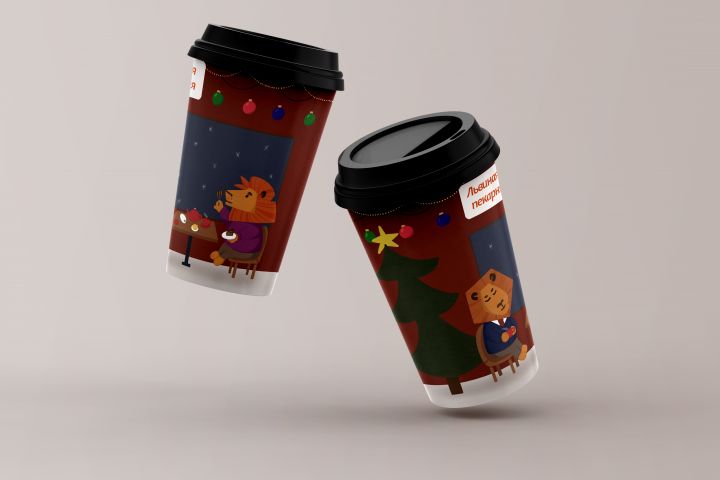Данная графическая концепция представляет из себя иллюстрацию для стаканчиков кофе на новогоднюю тему.