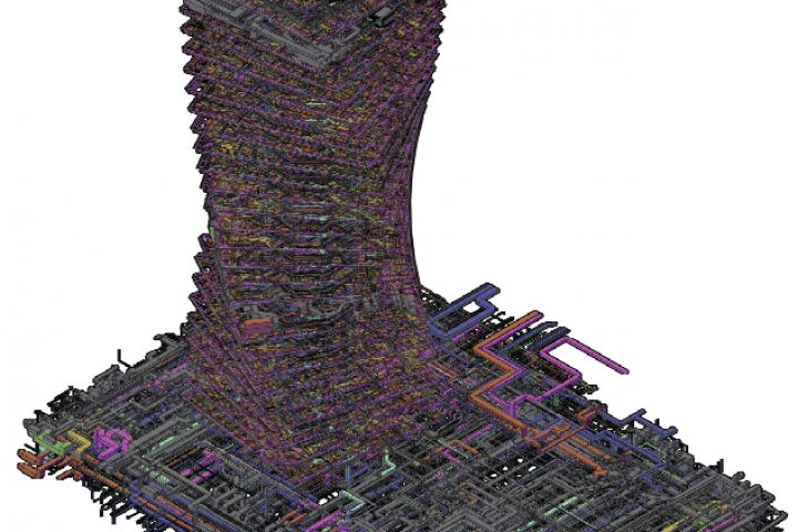 Работа состояла в увязке всех сетей по этажам в 3D моделировании: