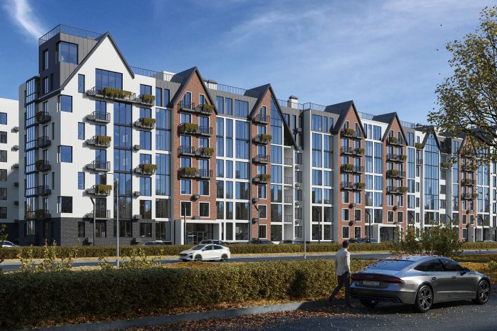 Процесс работы включил в себя проработку окружения, постановку освещения, настройку материалов и постобработку. Дополнительно была выполнена концепция благоустройства двора. Было несколько кругов правок из- за изменений фасадов в архитектурном проекте.