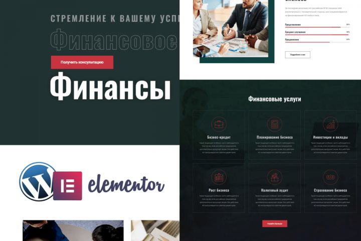 Готовый проект финансового сайта на WordPress и Elementor предлагает простое и эффективное решение для создания профессионального и привлекательного сайта в сфере финансовой деятельности.
