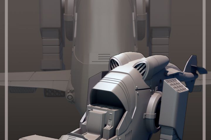 Модель разборная. Двигатели, крылья и кабина отделяется. Так же модель имеет подставку. Сам референс из какой-то старой игры.