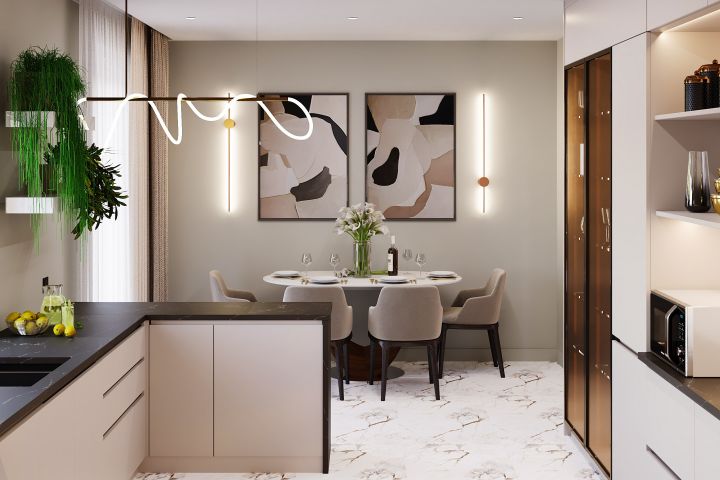 Барной стойкой была отзонирована рабочая зона кухни от обеденной зоны