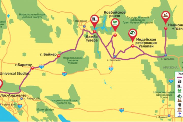 Обзорная карта достопримечательностей Лос-Анжелеса
