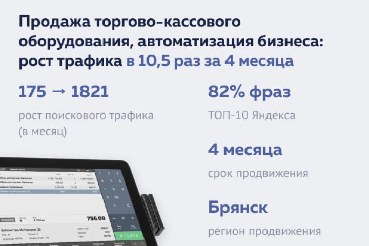 Четыре месяца — не слишком большой срок в плане продвижения сайта. Но за этот временной отрезок мы смогли достичь очень многого! Во-первых, в 10,5 раз вырос поисковый трафик (за счет грамотной СЕО-оптимизации и устранения технических ошибок). Во-вторых, удалось обойти многих крупных конкурентов, включая «непотопляемые» агрегаторы.