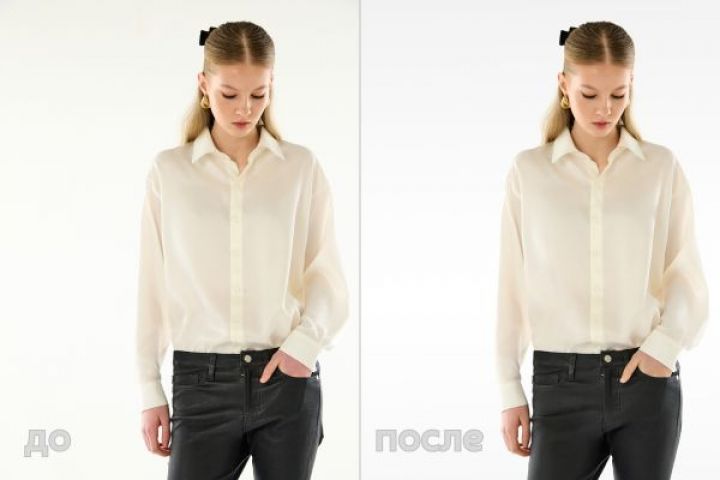 Простая ретушь искусственным интеллектом предназначена для изначально качественной съемки одежды – улучшает внешний вид изделия, убирает лишние складки, неровности и небольшие недочеты быстро, или если результаты вашей съемки плохого качества – для улучшения качества изображения, с небольшим улучшением деталей (разглаживание мелких складок, заломов, чистка от мелкого мусора)