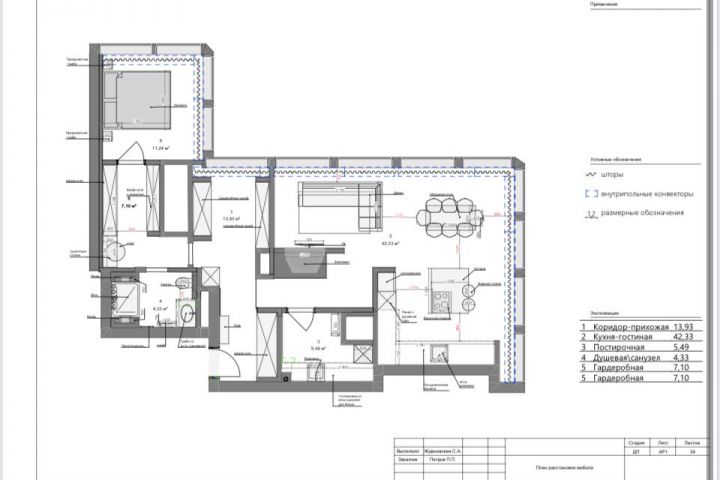 Исходя из информации обмерного плана и выбранного заказчиком планировочного решения были выполнены чертежи.