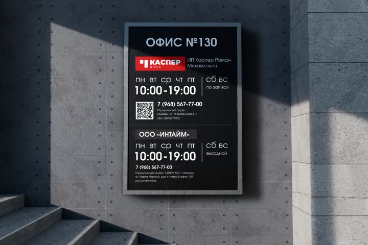 Табличка «График работы» для офиса. Формат А3. Учесть фирменные цвета, шрифты. Акцент на читаемости, минимализме и соответствии нормам визуальной навигации. Подготовить макет к печати