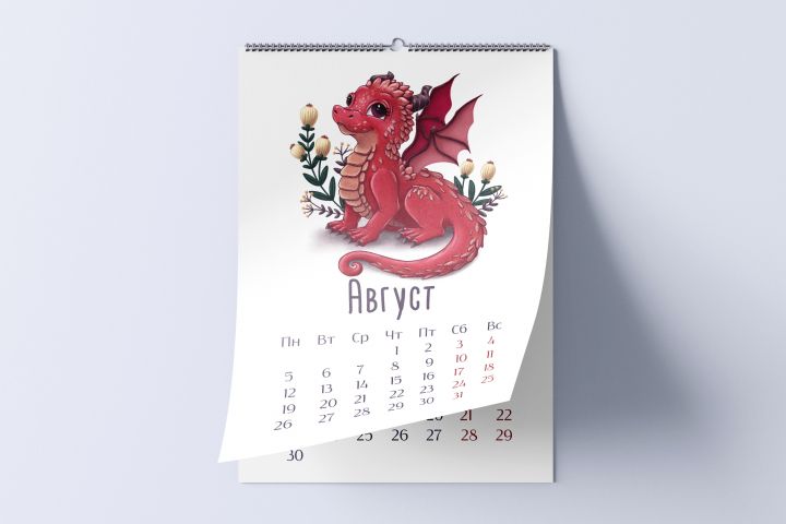 Календарь на 2024 год, созданный на основе рисунков драконов - символа года.