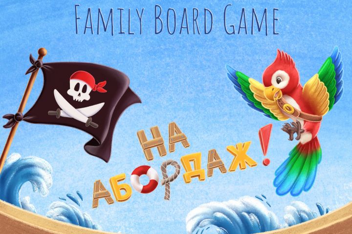 Разработка карточек, игрового поля и дизайна упаковки для детской настольной игры про пиратов.
