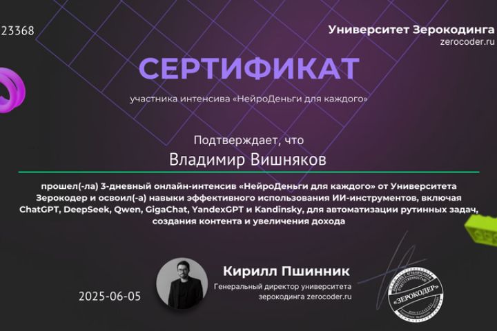 Сертификат по Нейросетям