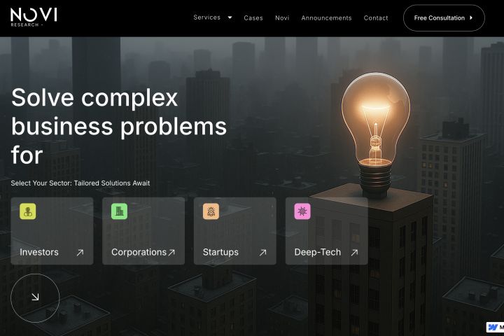 We engineered an interactive sector picker (Investors, Corporations, Start-ups, Deep Tech), AI-generated hero graphics, and a case-study carousel that proves their “research that performs” promise.