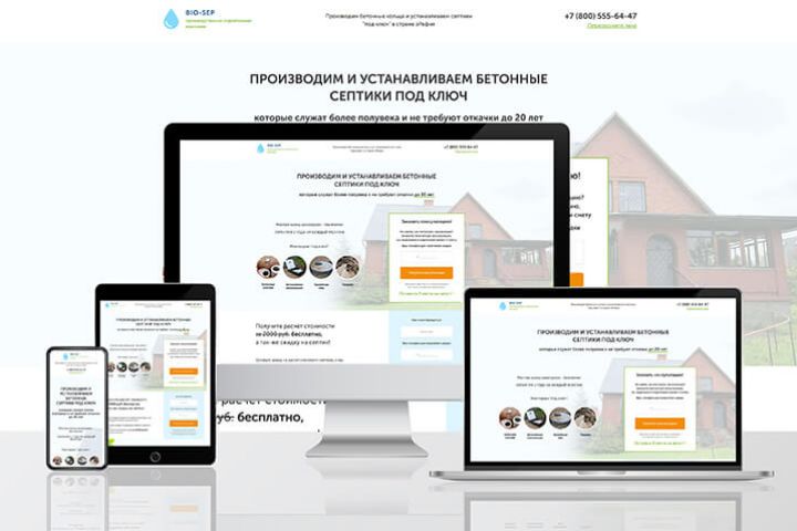 >> Создать одностраничный сайт производственно-строительной компании, которая производит и устанавливает бетонные септики под ключ.