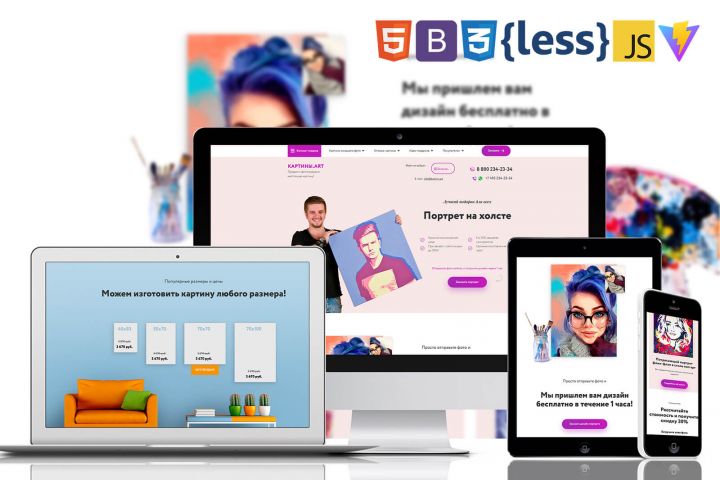 2. Сверстать по утвержденному макету лэндинг на HTML при помощи библиотеки Bootstrap и динамического языка стилей Less.